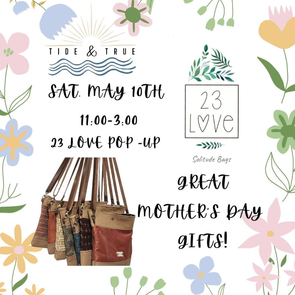 Mother’s Day is Sunday 5/11! Come shop Tide and True Saturday May 10th with a special pop-up guest 23 Love.