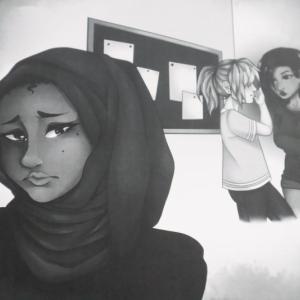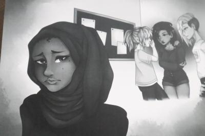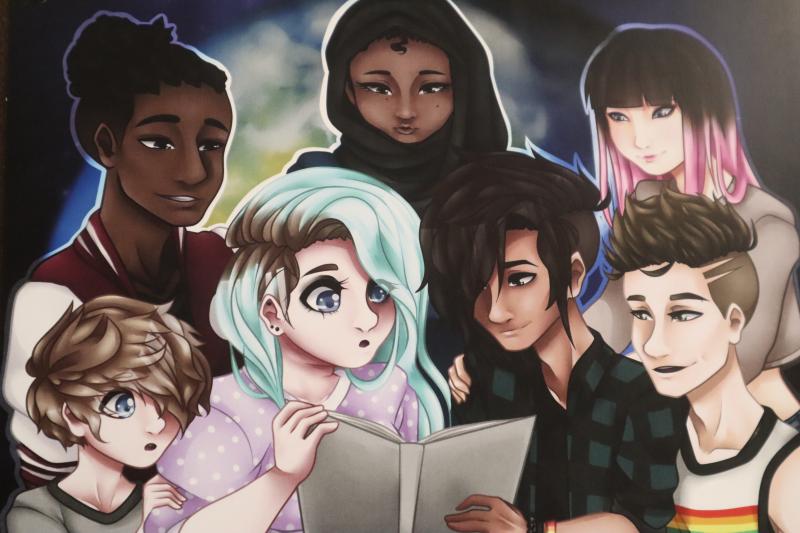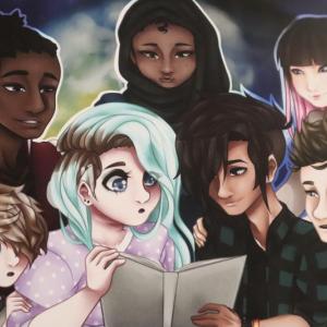 The illustrations for Beyond Us are filled with nuance and subtlety. Darker moments in the story are drawn in black and white. Moments with friendship and positivity bloom in full color. Various forms of diversity are represented through symbols on characters' clothing. A bracelet with the LGBTQ+ rainbow can be found in one illustration, and the puzzle piece symbol for autism in another.