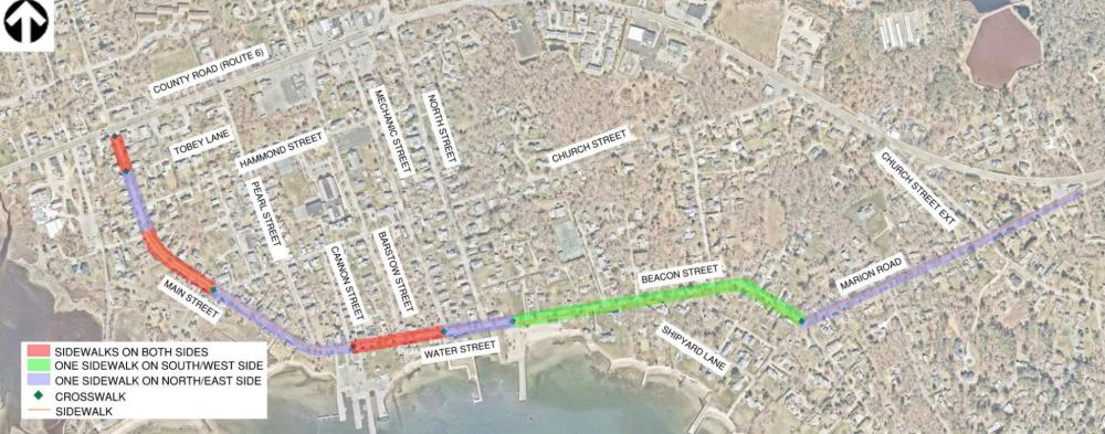 The project proposes widening Main Street, Water Street, Beacon Street and Marion Road to 24 feet and marking them as shared travel lanes to improve cyclist safety.