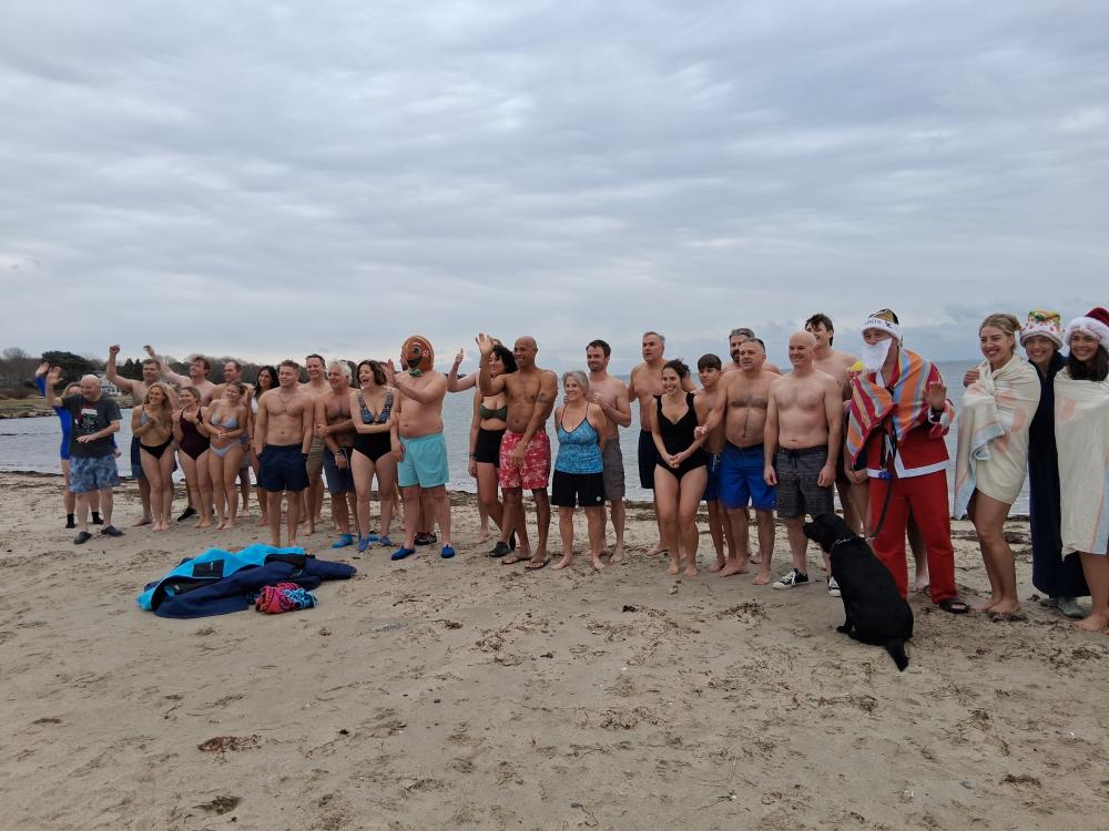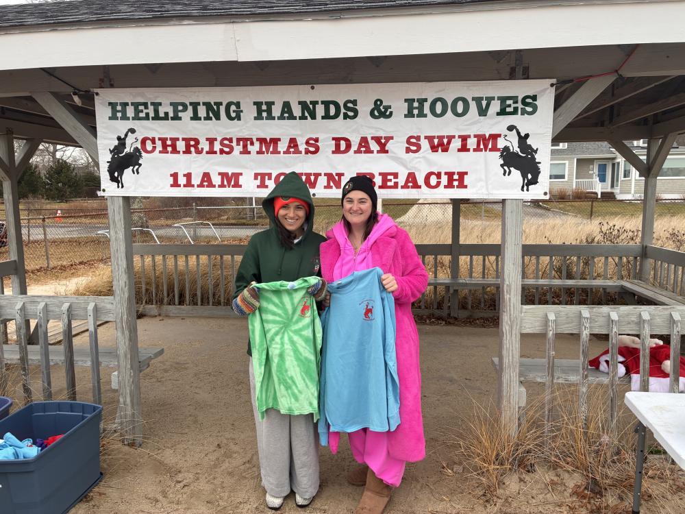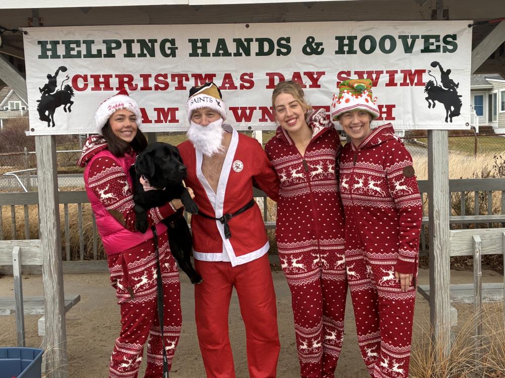 About 45 people attended Helping Hands and Hooves’ 22nd annual Christmas Daw Swim at Mattapoisett Town Beach, and they raised about $1,500.