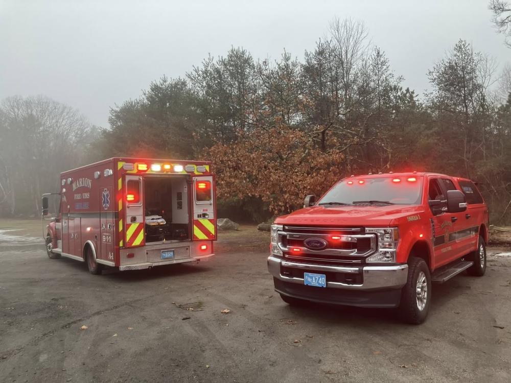 The Marion Fire Department and Emergency Medical Services rescued the dog, which had wandered across the marsh and pond near Point Road.