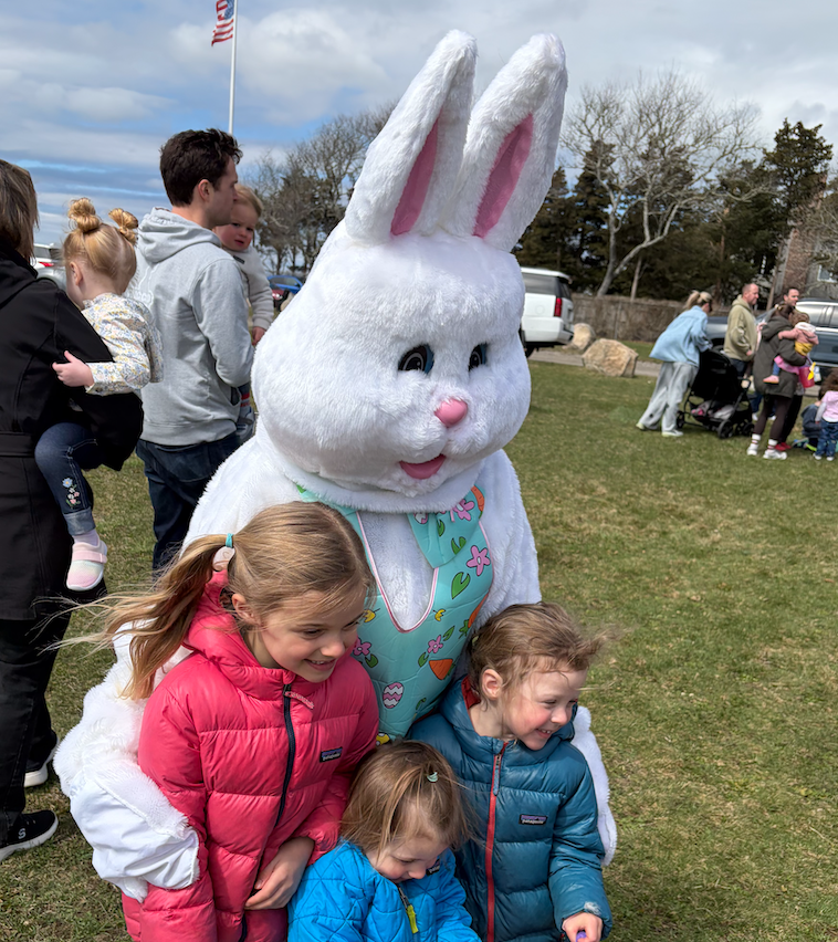 The Easter Bunny shares a moment with Parker Flaherty, Avery Flaherty and Addie Flaherty. Photo by Sandy Quadros Bowles