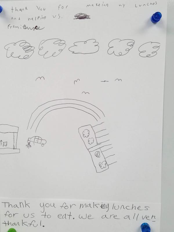 A thank you note given to one of the workers by a student. Photo by: E.O. Bednarczyk