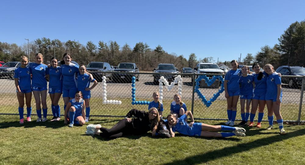 Teammates decorated the fields for Madelyn. From the left Leighton Taylor, Nora Marrano, Abby Victorino, Olivia Carrillo, Genevieve Spinale, Violet Soares, Genevieve Bolduc, Fiona White, Noella Michaud, Fiona Gately, Grace Alford, Gloria Correia and Riley Pitts.