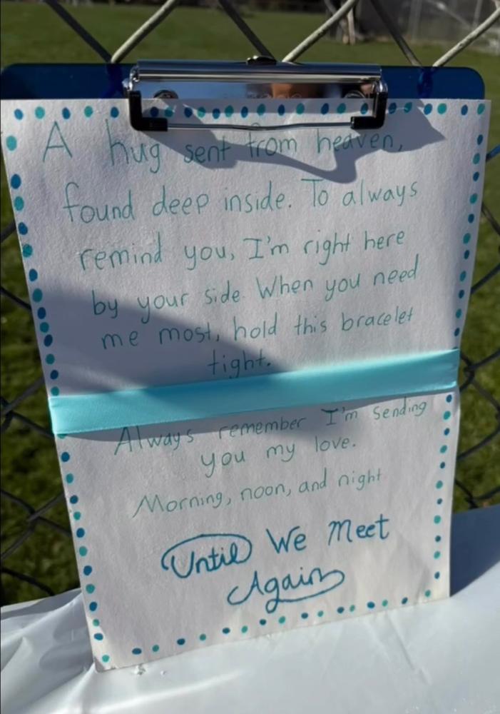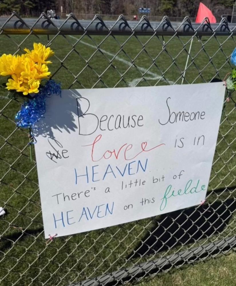 Fiona and her teammates decorated the field’s fences with posters and quotes celebrating Madelyn.