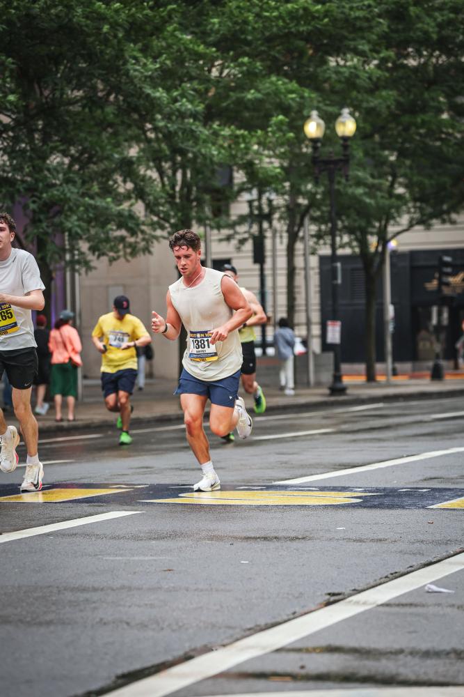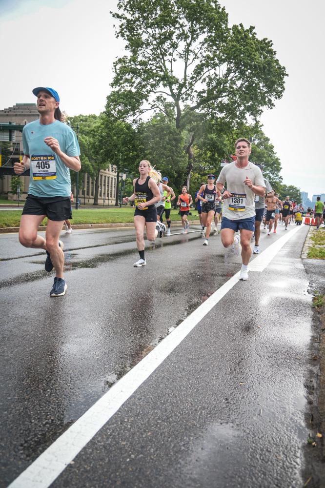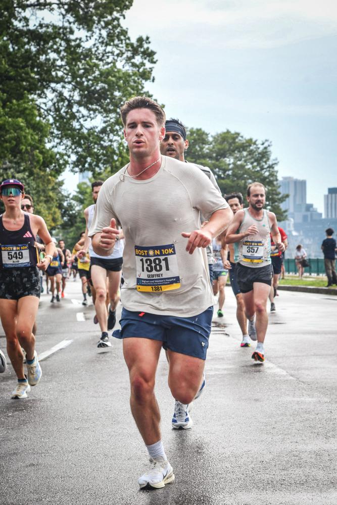 Noonan running through Boston during a 10K race. Image source: Geoffrey Noonan