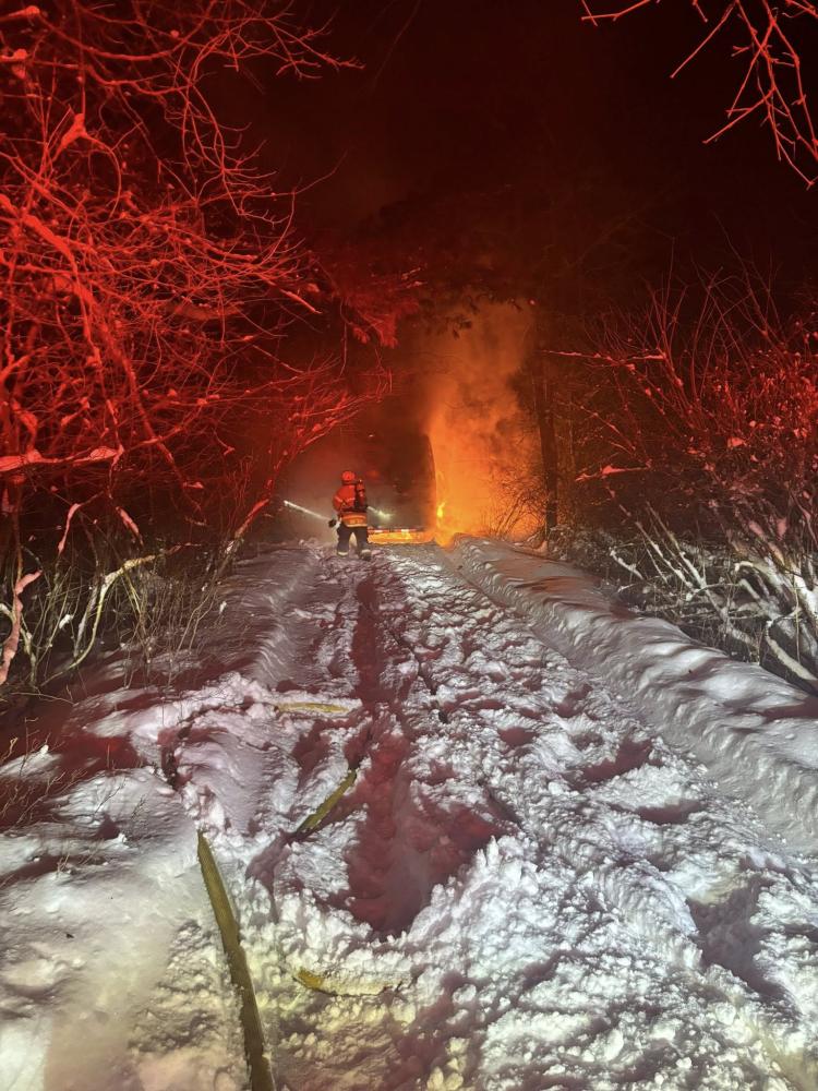 Marion Fire Chief Brian Jackvony said an Amazon delivery van caught fire after being stuck in the snow.