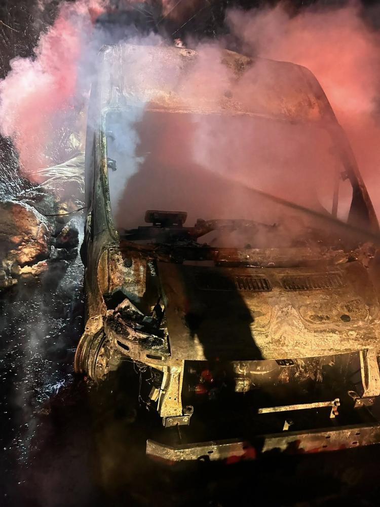 The Amazon delivery van after it caught fire in Marion on Saturday, Feb. 7. No one was injured. Photo source: Marion Fire Department Facebook