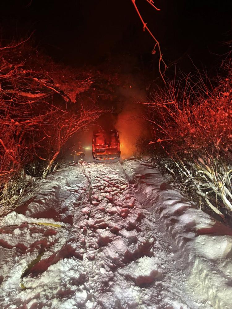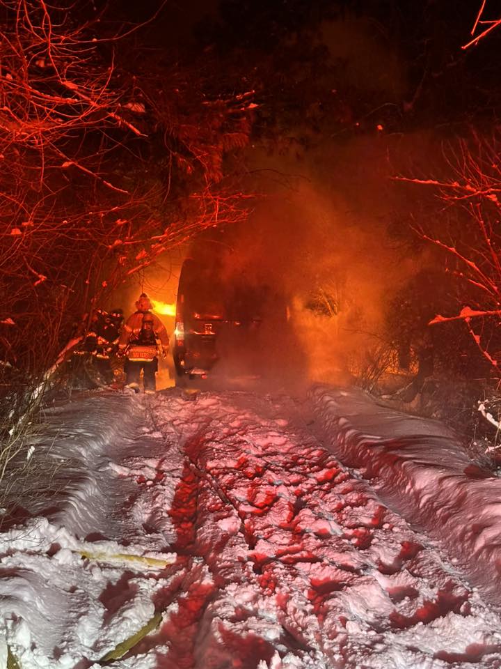 Cross Neck Road was covered in snow making it difficult for first responders to reach the van.