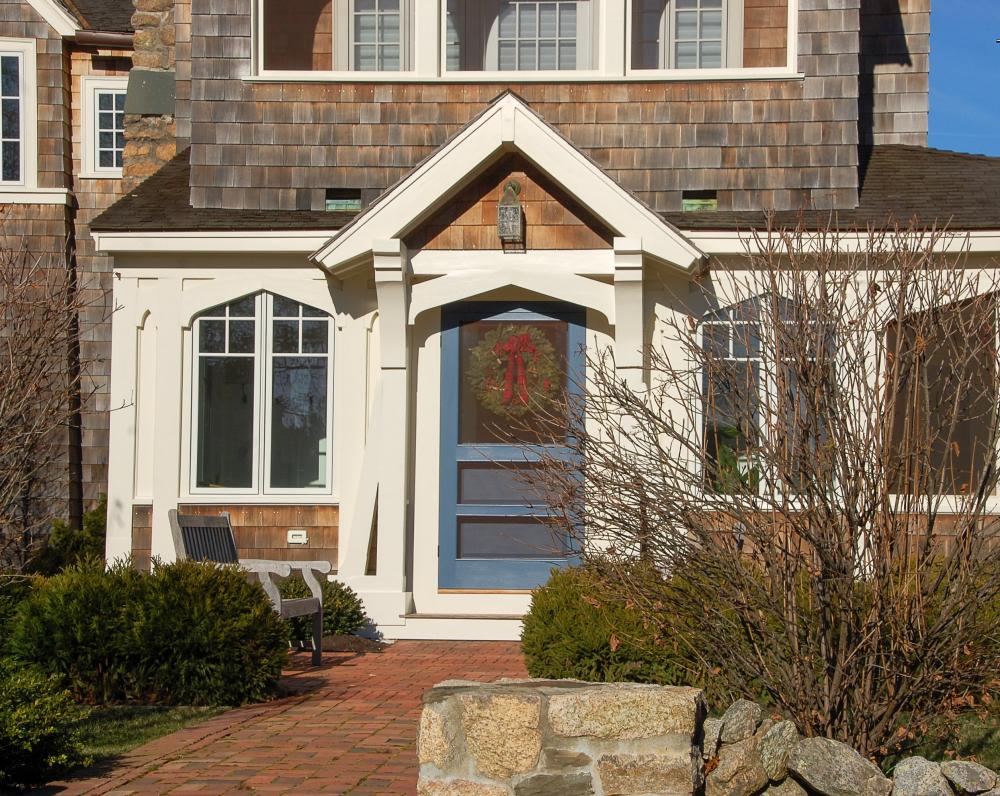 A door decorated with a wreath in Marion. Photos by Mari Huglin