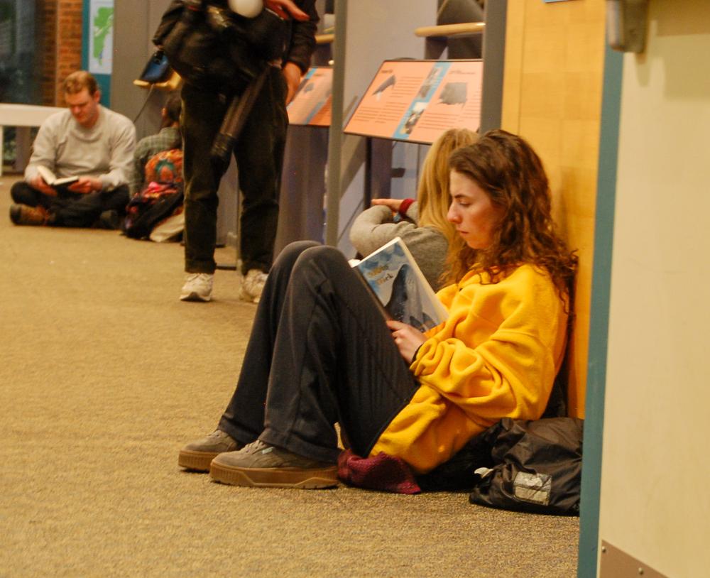 Readers attempted to find cozy and quiet spots to settle into for the night.