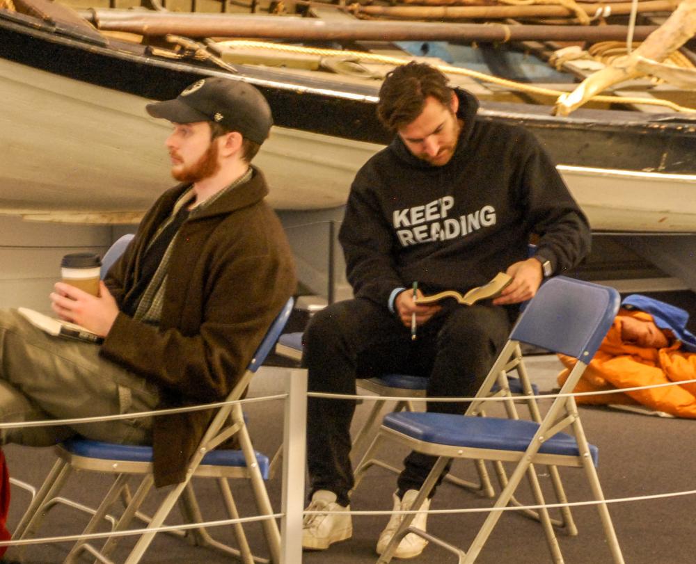 Coffee and food were avaliable throughout the marathon for readers to chat over.NEW BEDFORD — Several Tri-town residents were among the 3,000 readers who spent 25 hours on one mission — reading "Moby-Dick" at the New Bedford Whaling Museum.