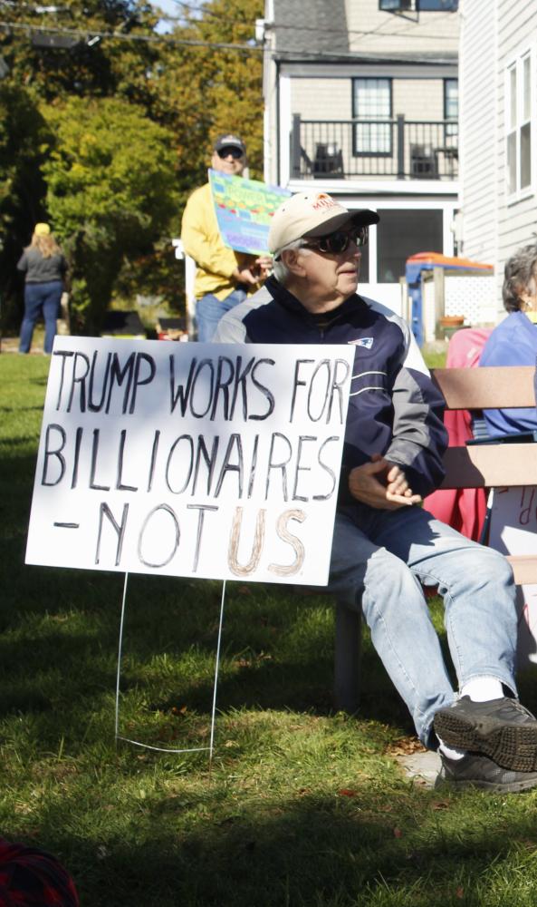 Cindy Spalding, a Delaware resident with family connections in Mattapoisett, attended the demonstration to protest against current federal budget cuts to healthcare and changes to the Voting Right Act.