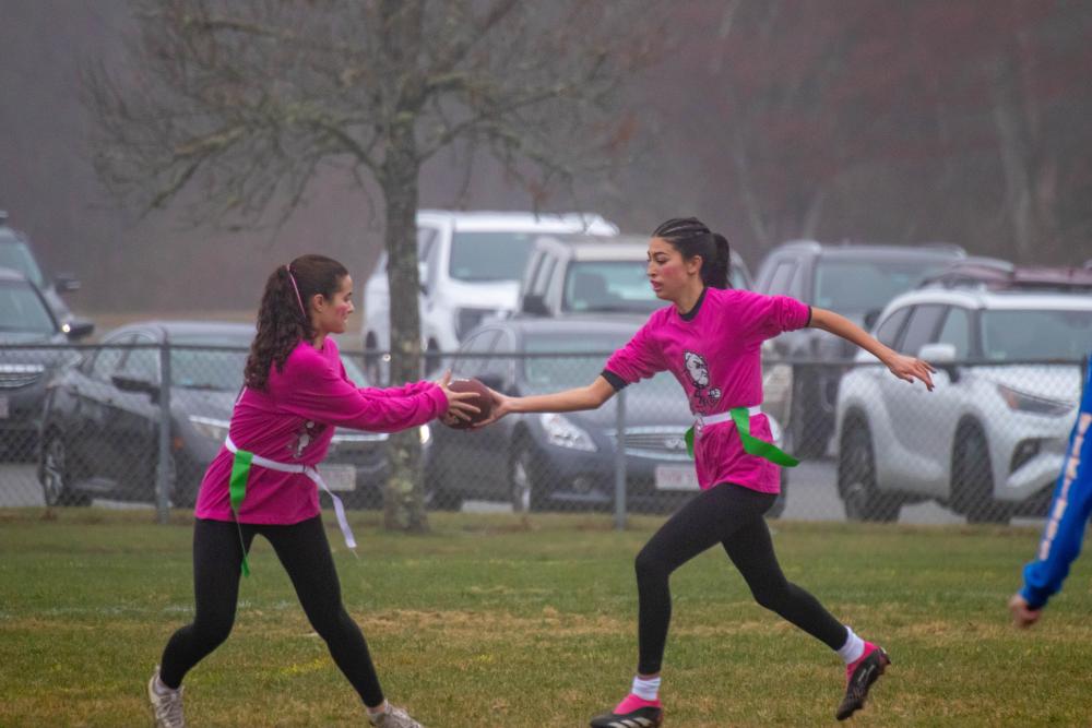 Emma Johnson lets a pass fly.MATTAPOISETT - The Old Rochester Regional Bulldogs hosted the annual powderpuff flag football game against the Wareham Vikings and despite an overtime loss, those involved said the tradition is more than a game.