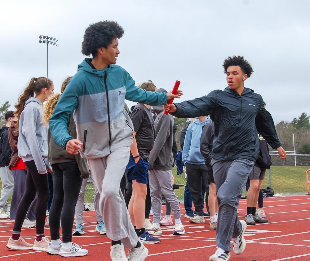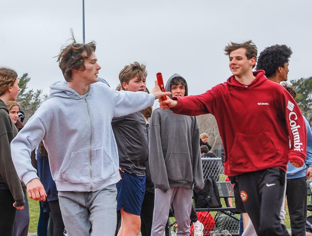 Ryan Calderone reaches for his baton exchange. Photos by Mari Huglin