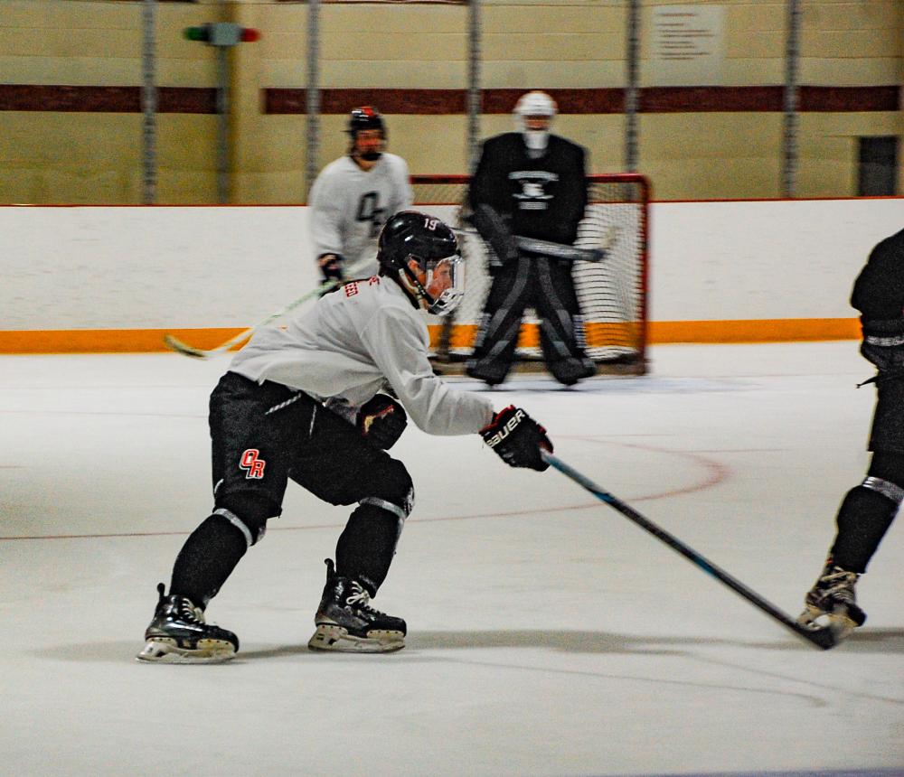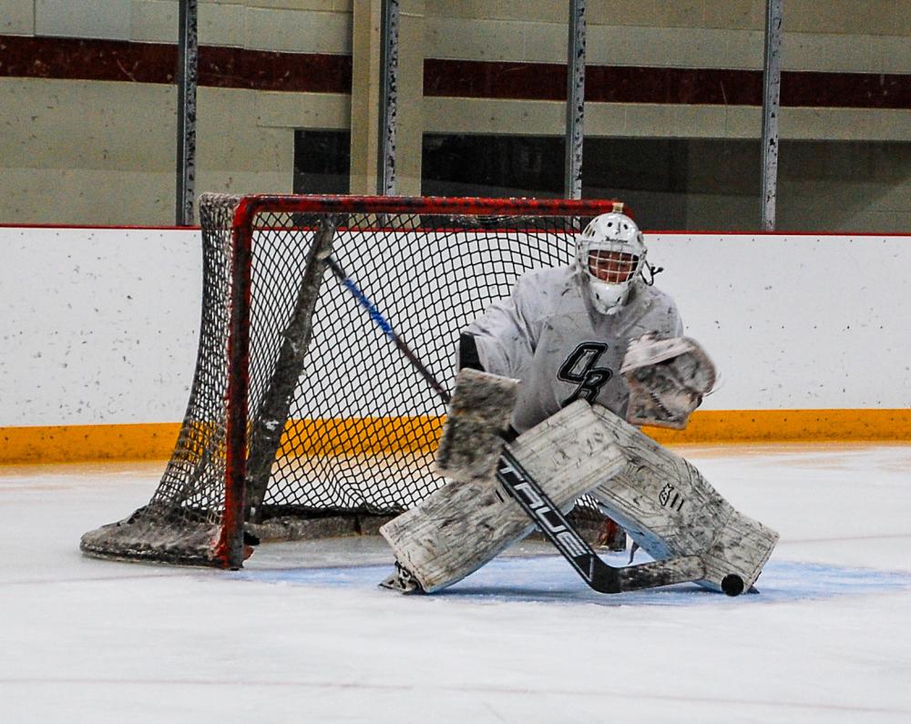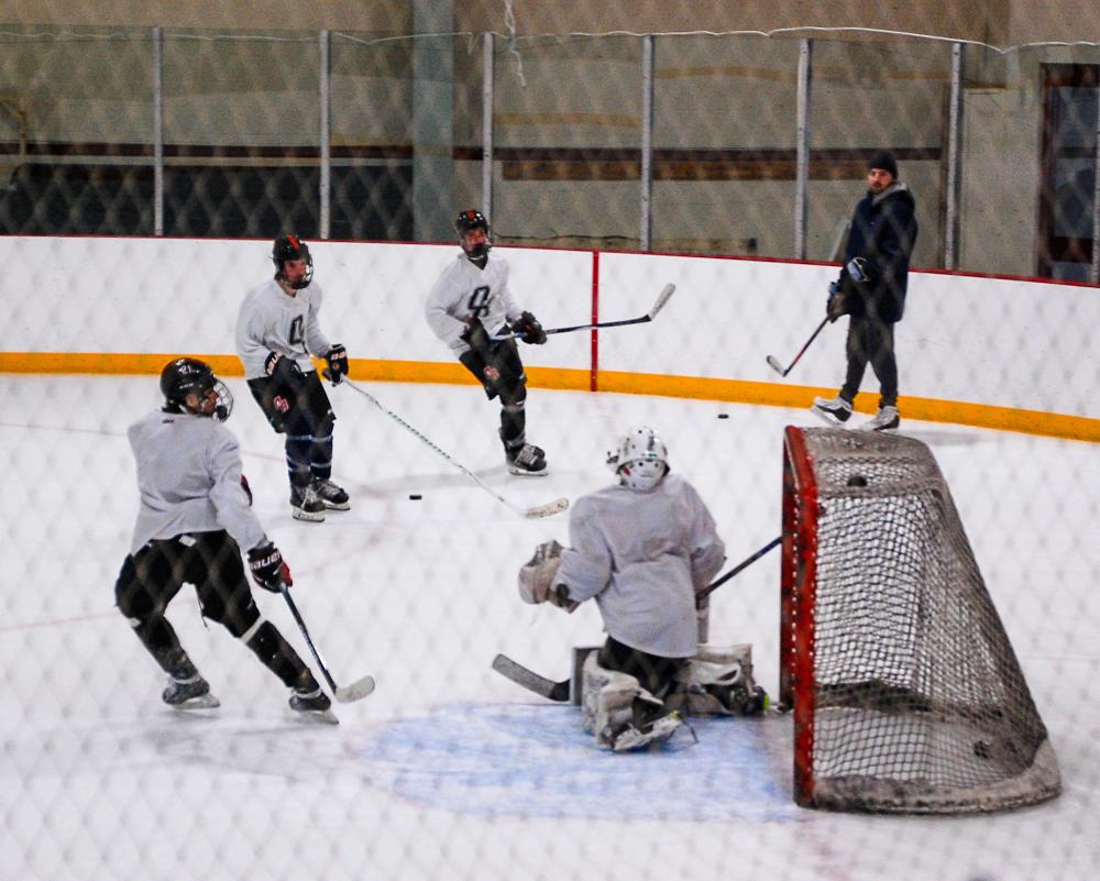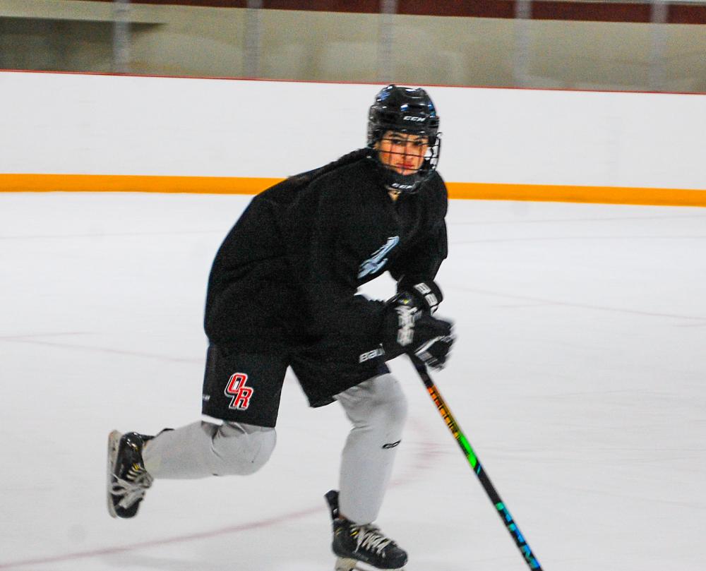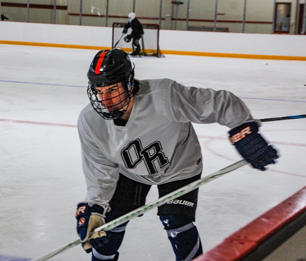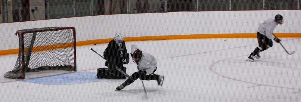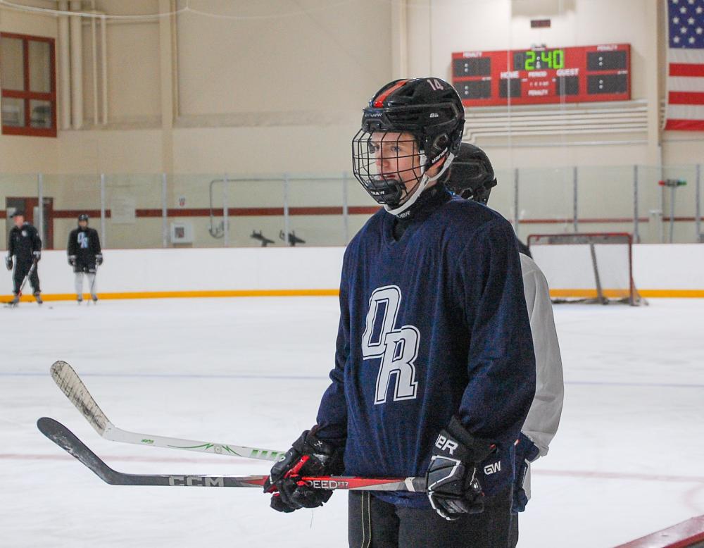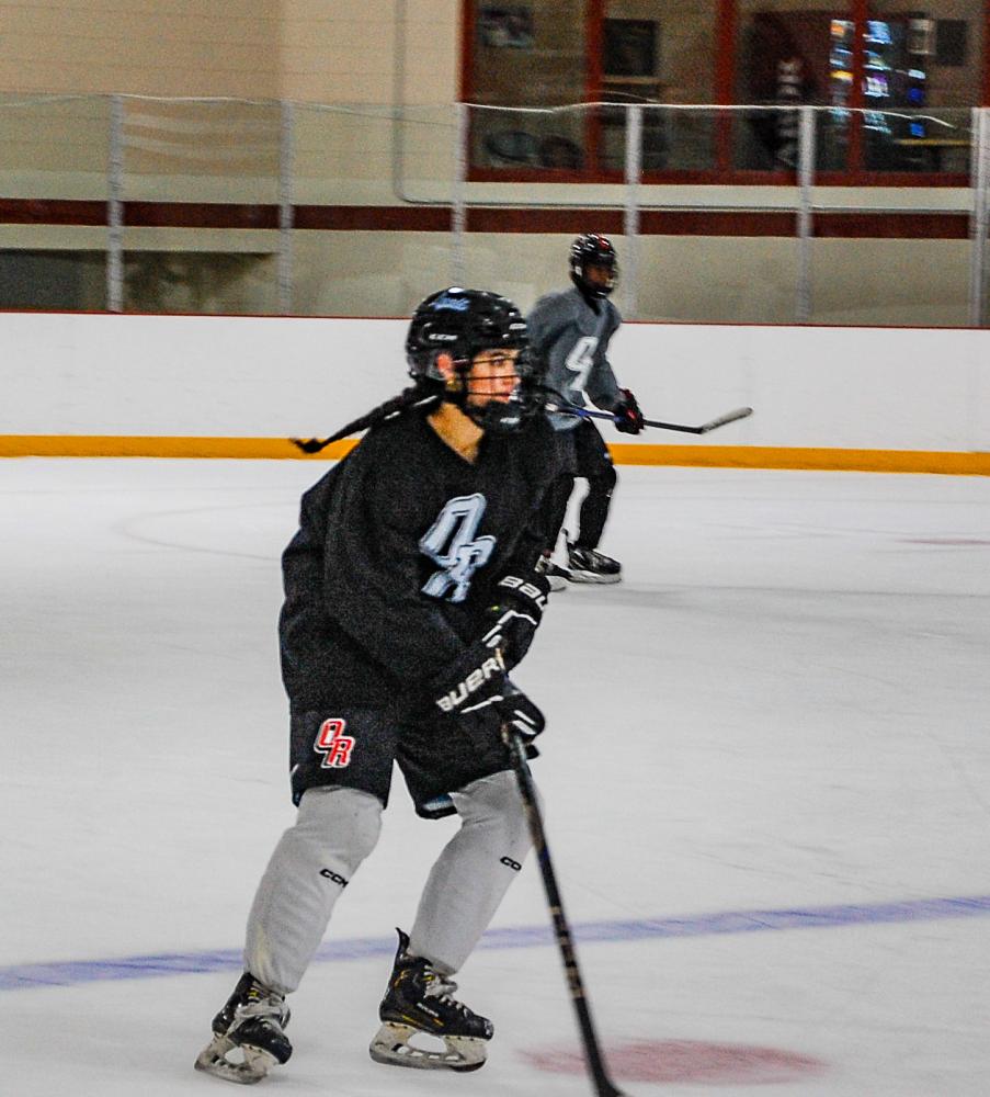 Liz Kilpatrick watches as a scrimmage goes on. MARION — Grit and continual improvement are the biggest goals for Old Rochester Regional High School men's varsity hockey team this season.