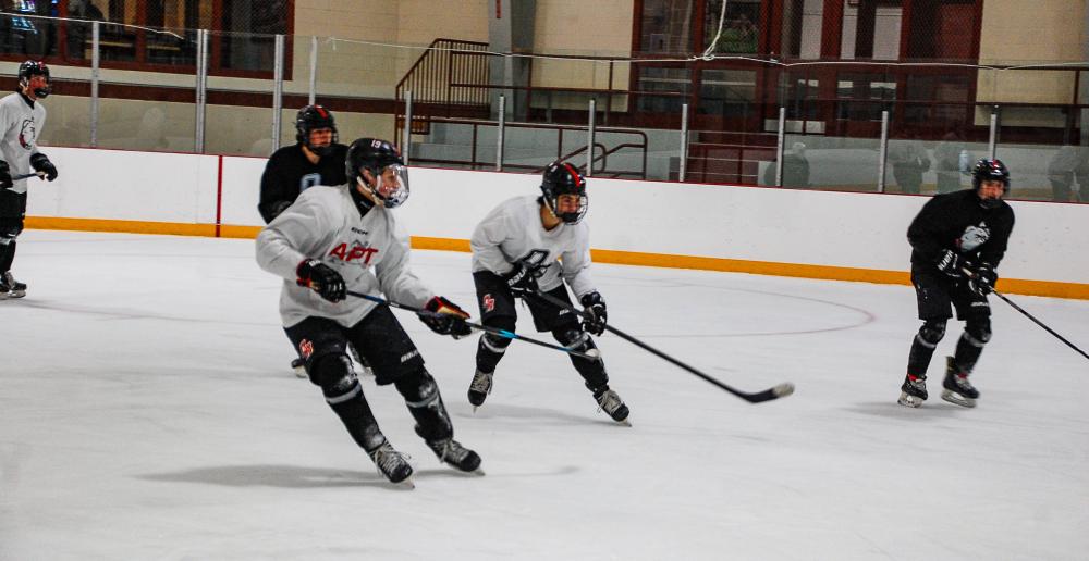 The Old Rochester hockey team skates at Tabor Academy in Marion.