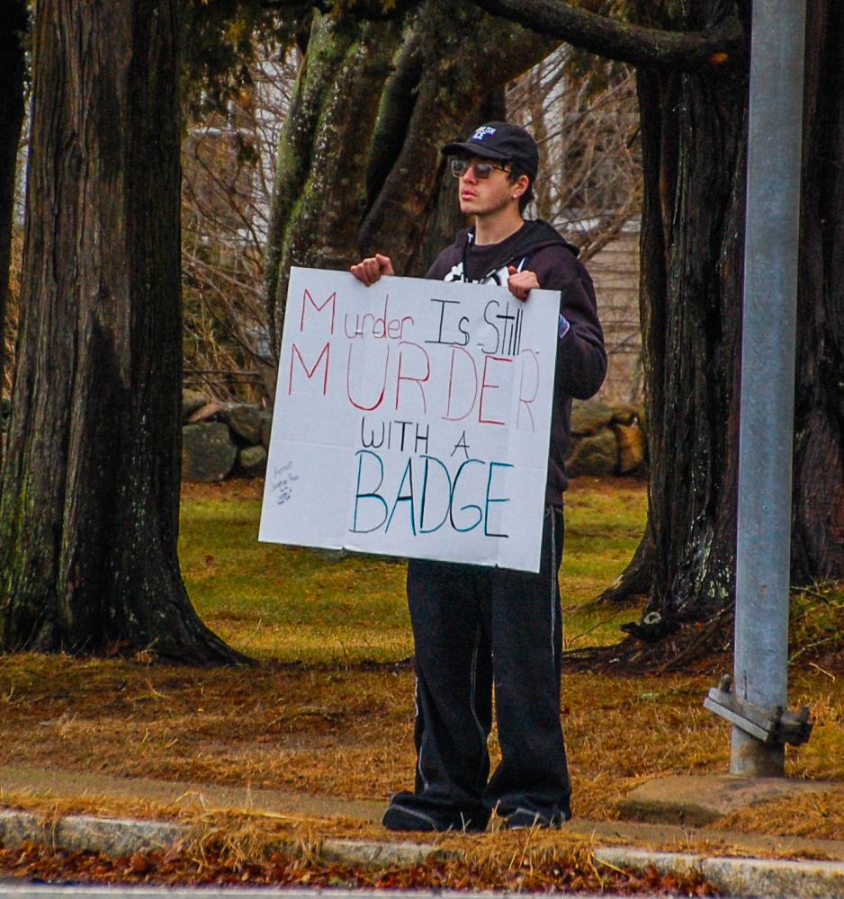 Protestors met on all four corners of North Street and County Street on Route 6.