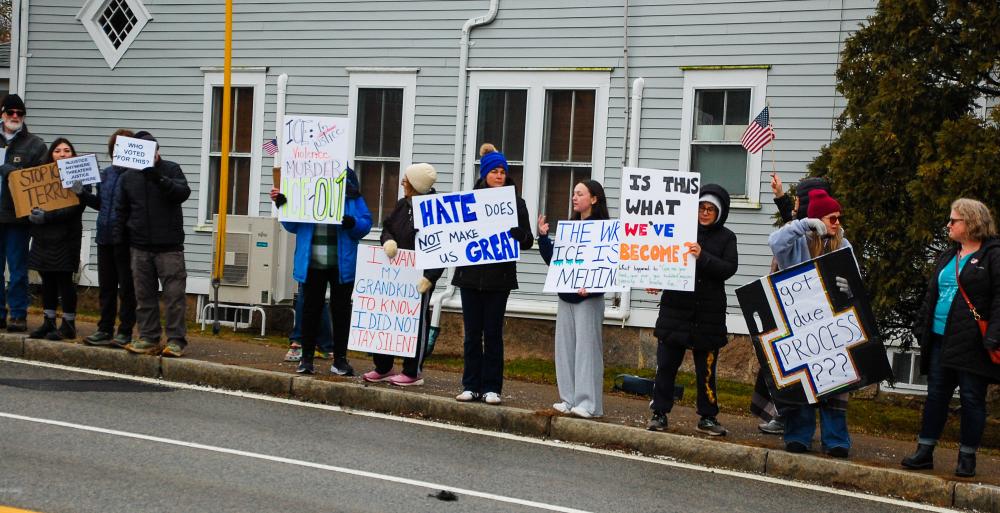 Jordan Johnson, an 18-year-old from Wareham, runs the social media for a non-profit citizens activist group Wareham for Law and Democracy. He said he showed up because what happened to Renee Good was "entirely unjust and illegal.”