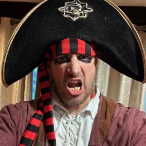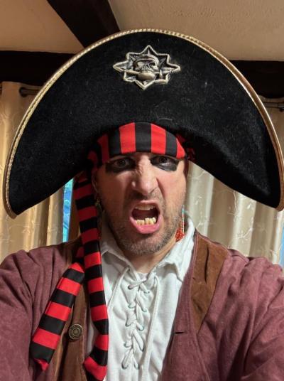 Allen dressed as a spooky pirate before he hosts a haunted murder mystery party.