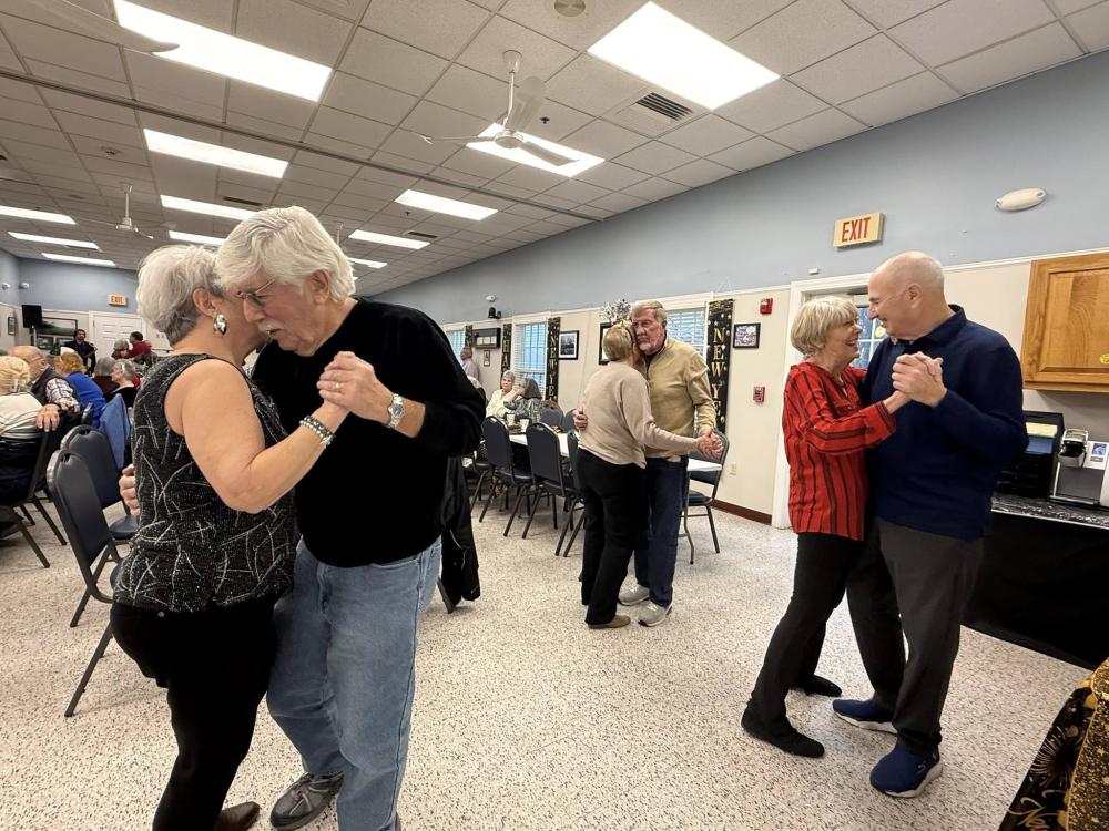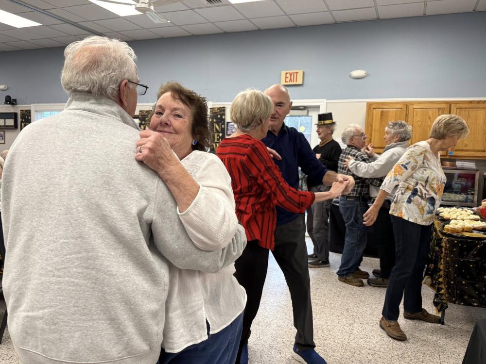 Residents smile together at the New Year's celebration. ROCHESTER — Twist, shake, shout! The Rochester Council on Aging rang in the New Year with singing, dancing and a live band Monday, Dec. 29.