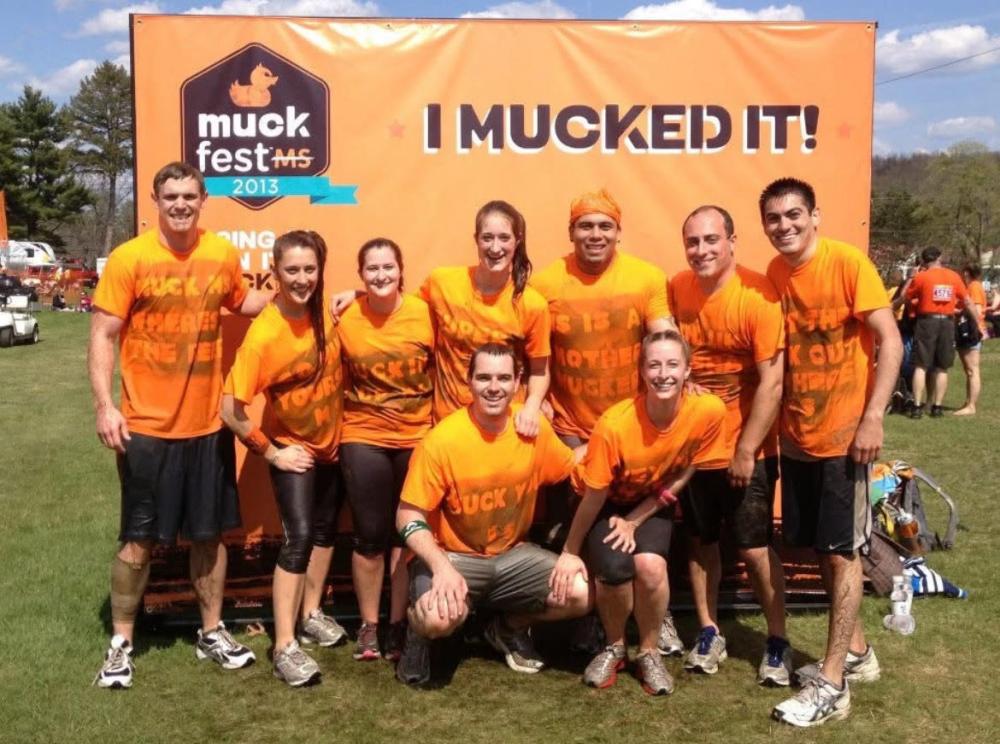 A mud fest obstacle course 5K to raise money for MS in 2013 with Pease's family and friend, who’s grandmother lived with MS for many decades.