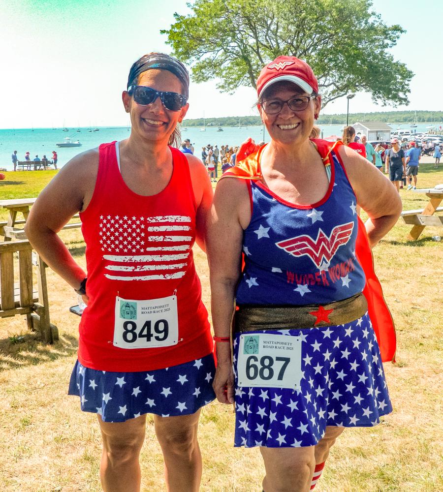 Among those who dressed up for the occasion were Donna Simmons and Tara Greaves, dressed in red, white and blue all the way down to their running shoes.