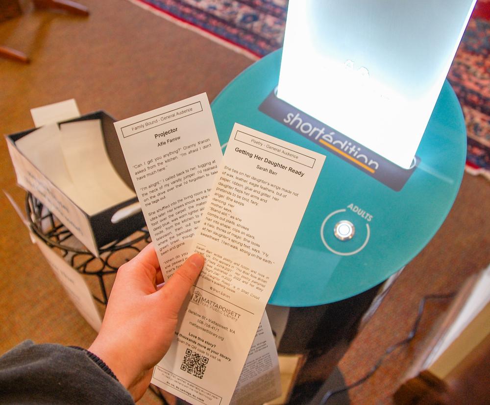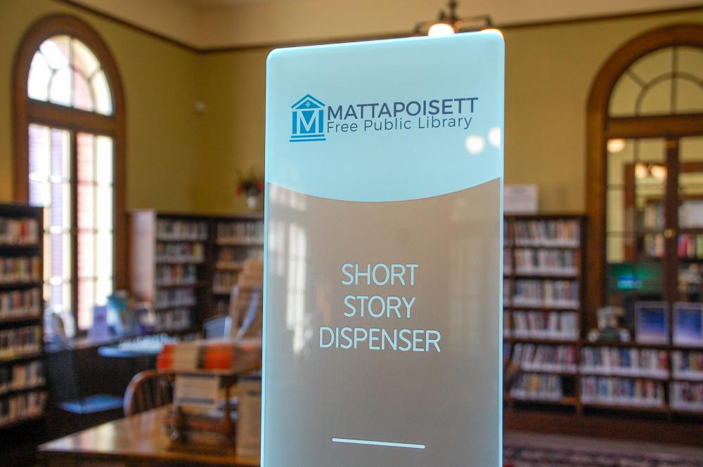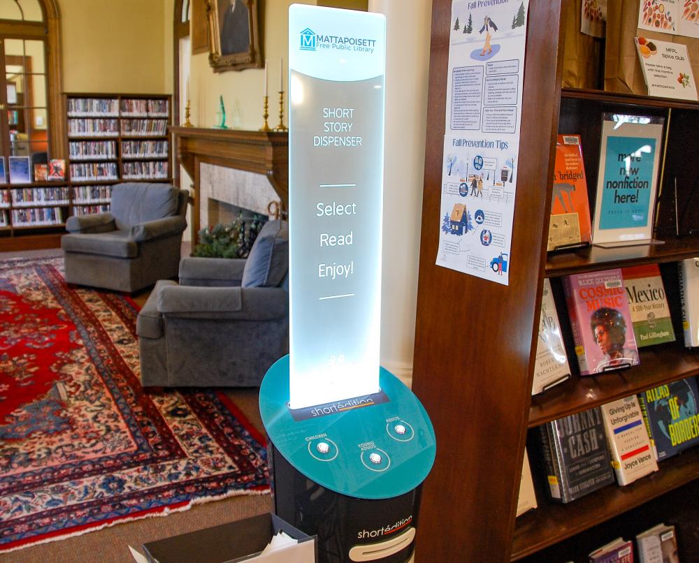 Short stories from an interactive story dispenser can be found at the Mattapoisett Library. Photos by Mari Huglin