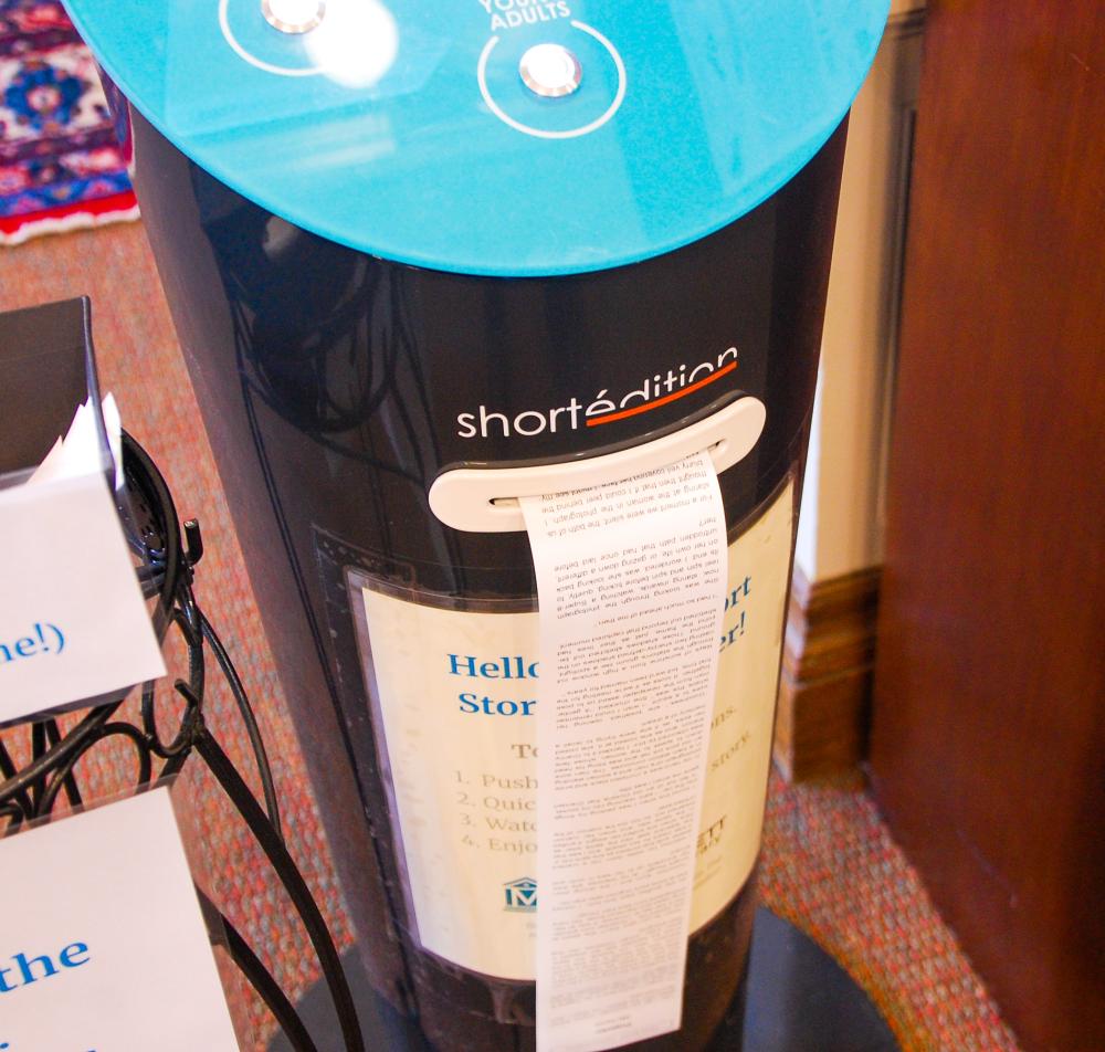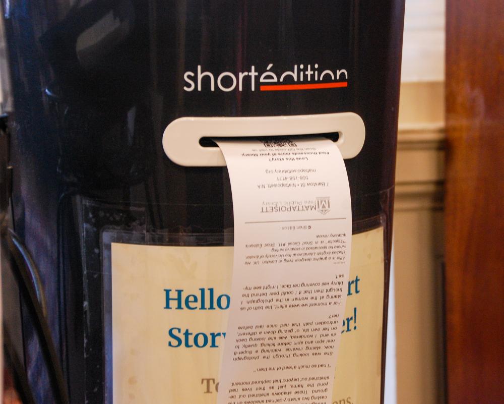 The library, located at 7 Barstow St., brought French company Short Edition’s machine into the main lobby. The Short Edition machine dispenses original short stories and poems for free.
