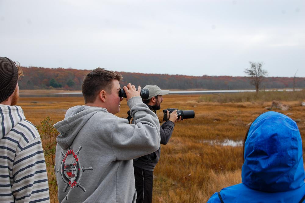 Hikers take photos of the wildlife on an LGBTQ+ hike hosted by Queer Hikes and Sippican Lands Trust. Photo by Mari Huglin