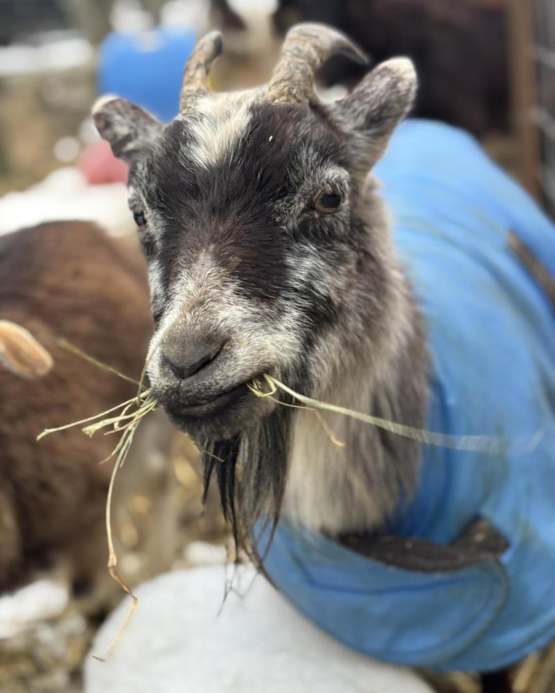 A goat warms up inside. Image source: Pine Meadow AlpacasThe Tri-Town weathered approximately 24 inches of snow from Sunday afternoon to Monday morning, according to the National Weather Service, and residents have stayed positive through power outages, snow covered roads and winter winds.