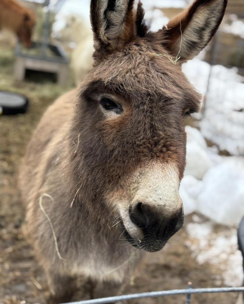 A donkey outside before the storm happened over the weekend. Image source: Pine Meadow Alpacas