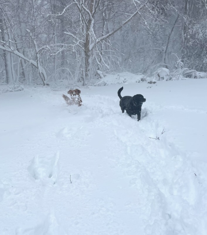 Charlie and Ballou race through the snow. Image source: Sarah Storer