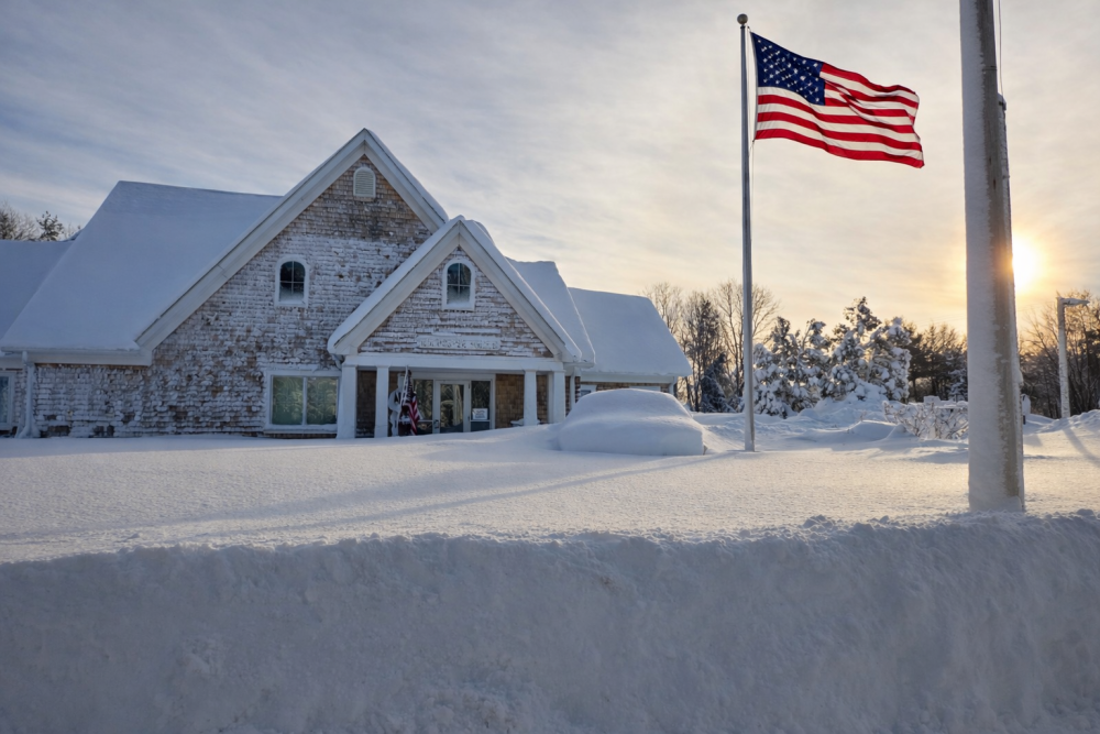 Brant Beach covered in snow on Monday, Feb. 23. Image source: Sarah Storer