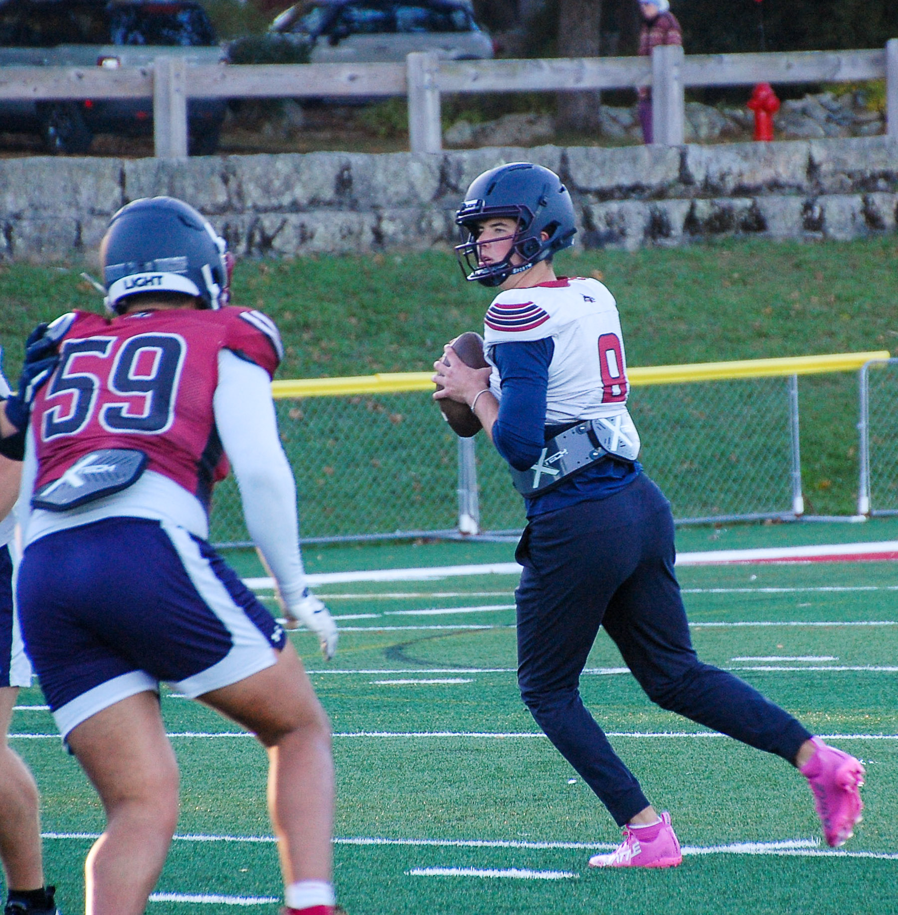 Peter Bourque of Hingham is a junior committed to the University of Michigan for the 2027-28 season. Bourque is the quarterback, a team captain and has been on the team for two years.