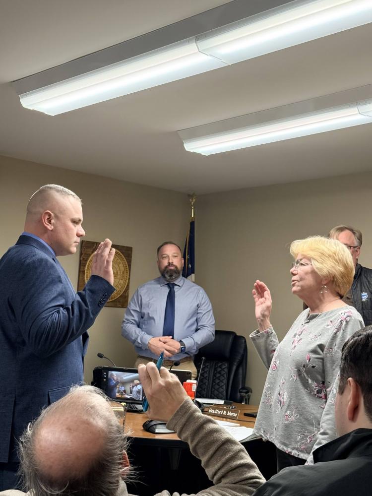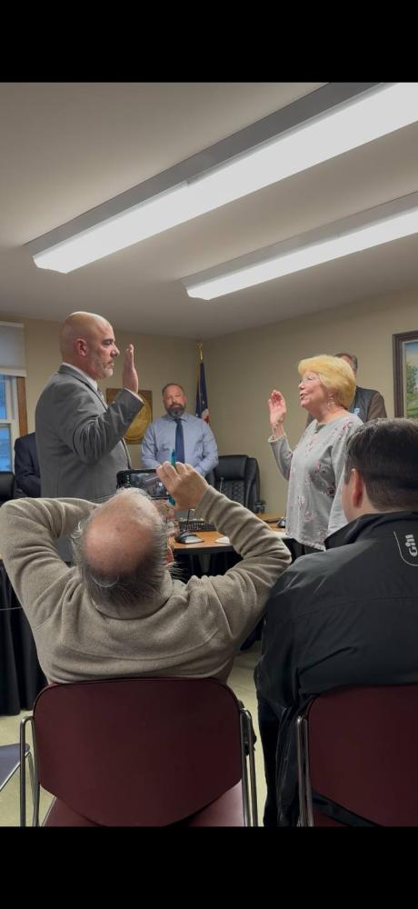 Christopher Coyman gets sworn in. Image source: Rochester Police Department Facebook ROCHESTER — Two new patrol officers, Paul Douglas and Christopher Coyman, were sworn into the Rochester Police Department at a Select Board meeting Monday, March 16.